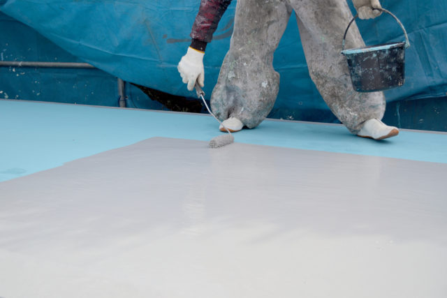 液状のウレタン樹脂を下地に塗り込み、化学反応によって硬化を起こさせ、弾力性のあるゴム状の防水膜を形成する工法。